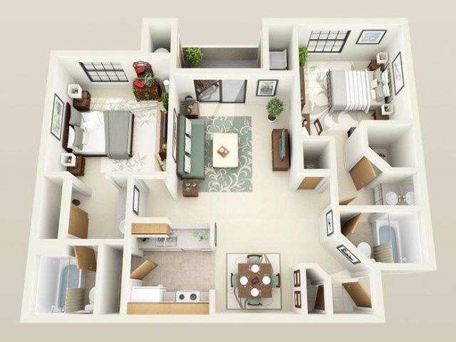 Apartment Model: Two Bedroom Two BathFrom $1,4152 Bedroom, 2 Bath, 960 sq ftAvailable Now![]()