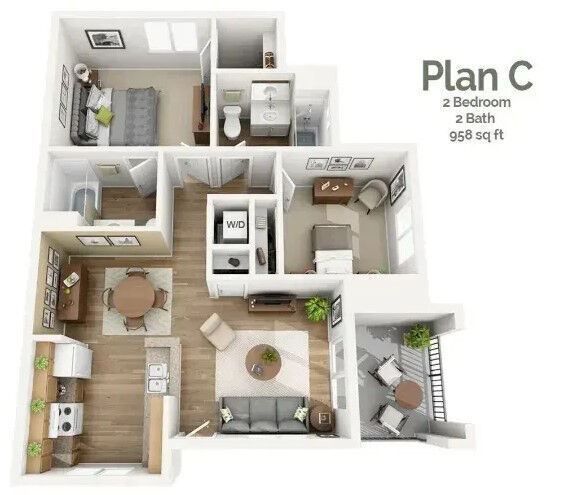 Apartment Model: Plan C NorthFrom $1,5392 Bedroom, 2 Bath, 958 sq ftAvailable Now![]()