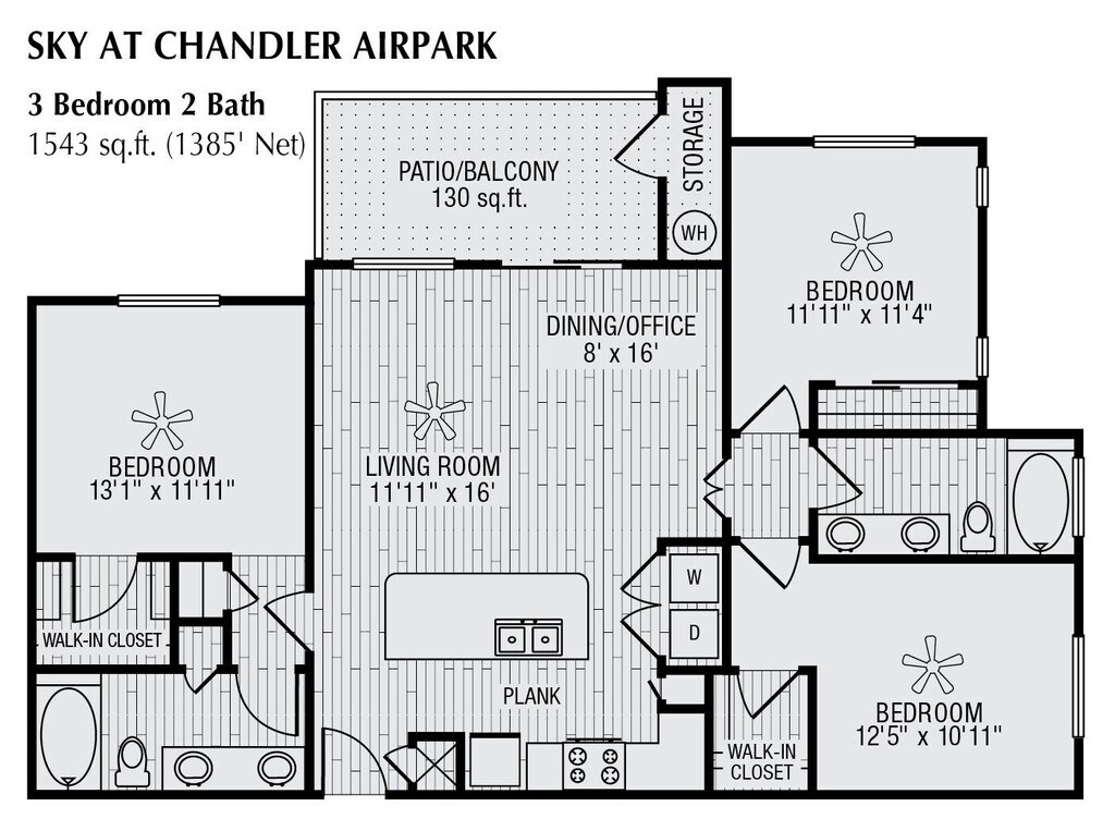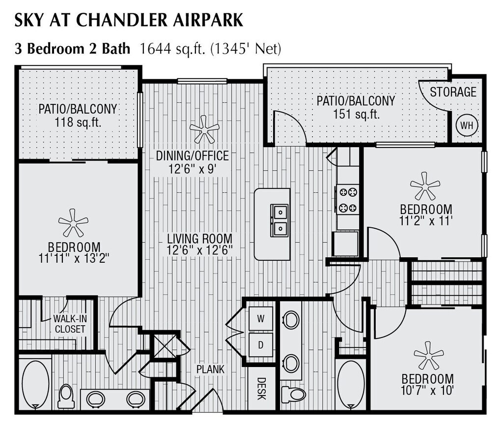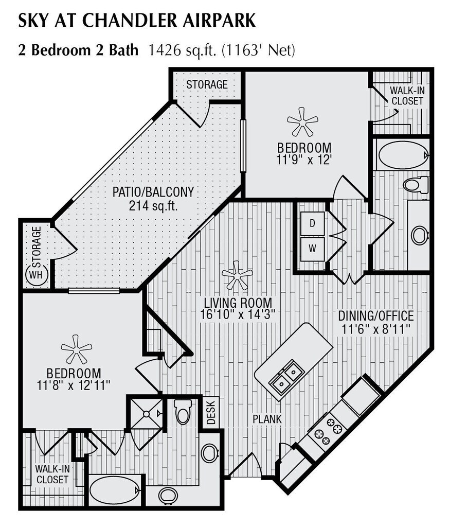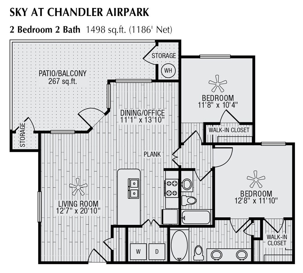 Sky At Chandler Airpark offers 1 to 3 Bedroom apartments starting from $1,308 and having 562–1,385 sq ft. Here is the current pricing and availability: