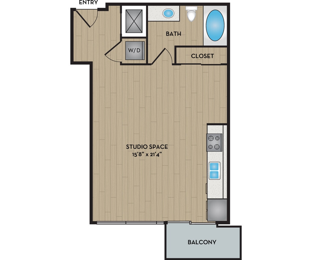 Studio, 1 Bath, 544-672 sq ftAvailable Mar 5Model Gallery