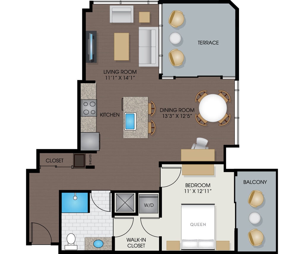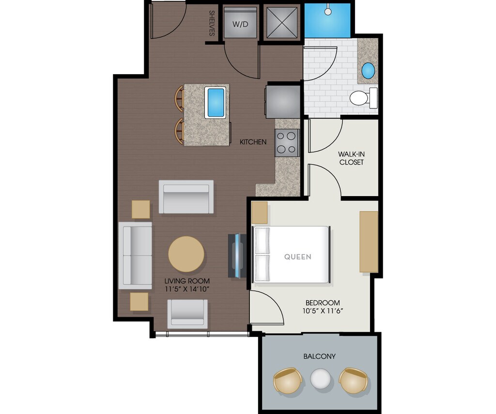 Studio, 1 Bath, 585-617 sq ftAvailable NowModel Gallery