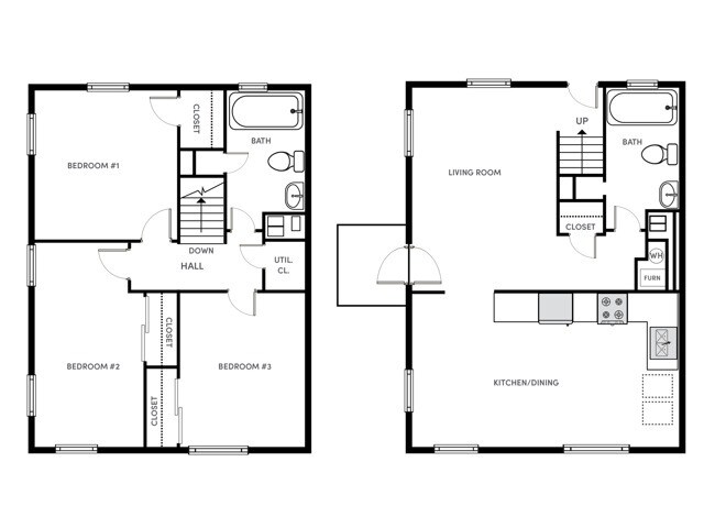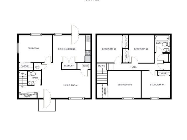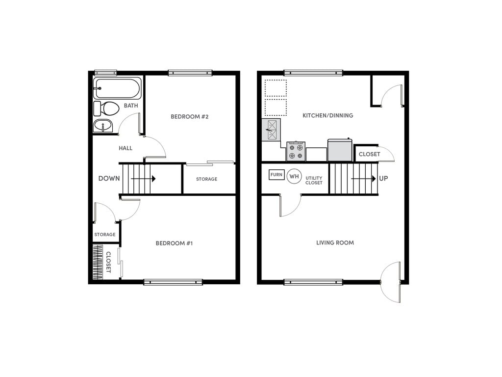1 BR, 1 BA - Original - Floorplan 1 2 Bedrooms