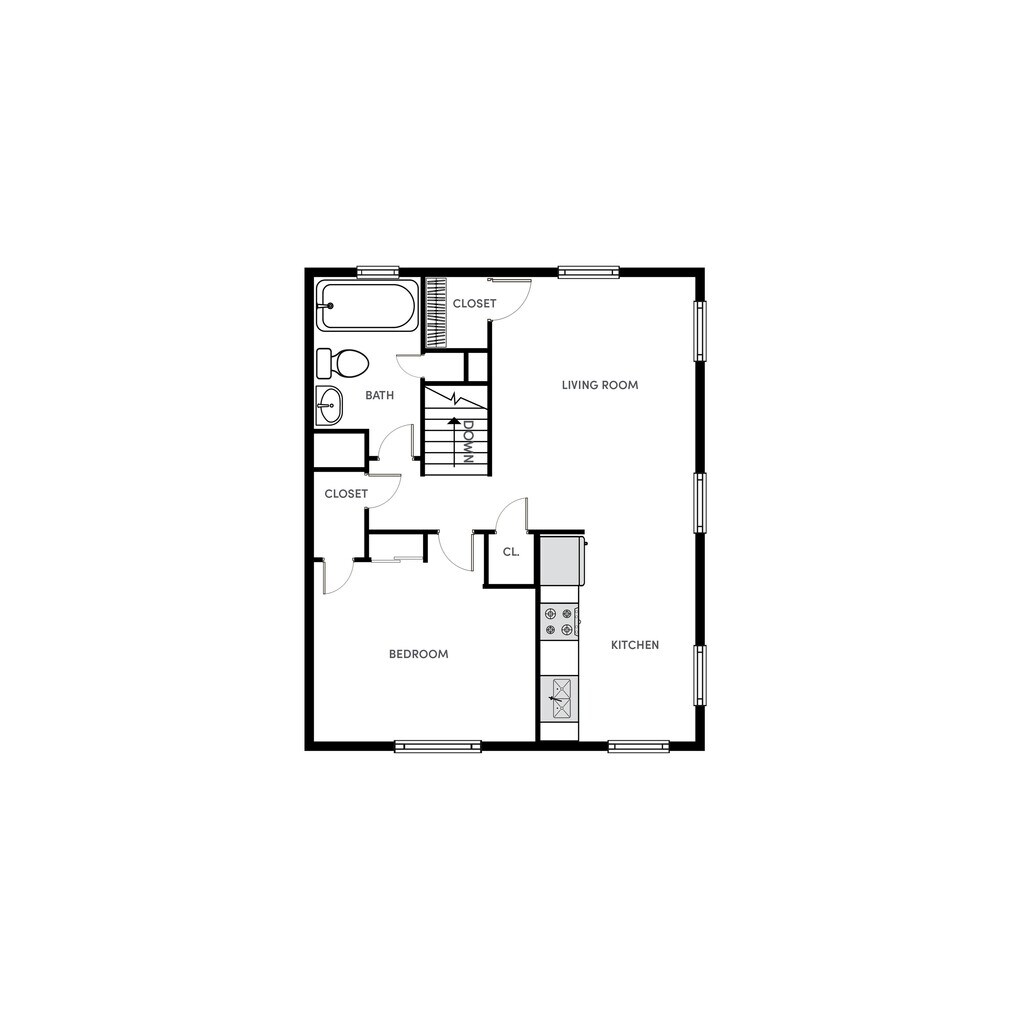 1 BR, 1 BA - Classic - Floorplan 1 ![]()