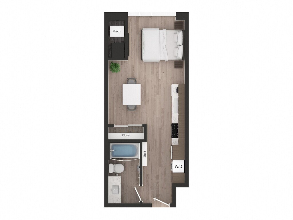 Apartment Model: ST1bFrom $2,052Studio, 1 Bath, 395 sq ftAvailable NowFloor plans are artist's rendering. All dimensions are approximate. Actual product and specifications may vary in dimension or detail. Not all features are available in every rental home. Prices and availability are subject to change. Base rent is based on monthly frequency. Additional fees may apply, such as but not limited to package delivery, trash, water, amenities, etc. Deposits vary. Please see a representative for details.