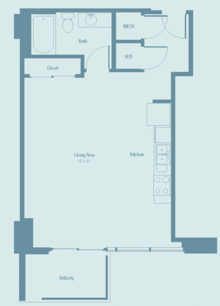 Studio, 1 Bath, 621 sq ftAvailable NowModel Gallery