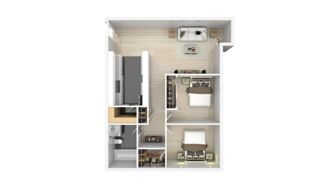 2 Beds, 1 Bath, 792 sq ftAvailable NowModel Gallery