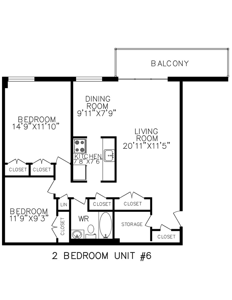 1 Bedroom - Floorplan 6 2 Bedrooms