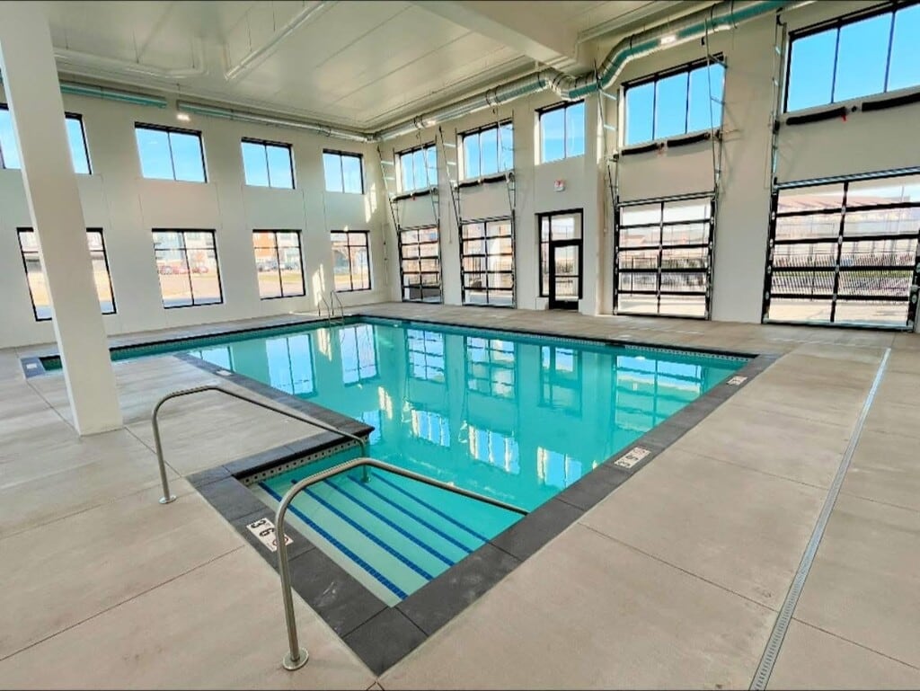 New upscale apartment community in Ramsey, MN, featuring 1, 2 & 3-Bedroom, 1-Bedroom + Den, and Studio apartment floor plans. The property features a rooftop lounge, indoor and outdoor pools, a dog park, pet wash, a sports court, a golf simulator, a fire pit & more.