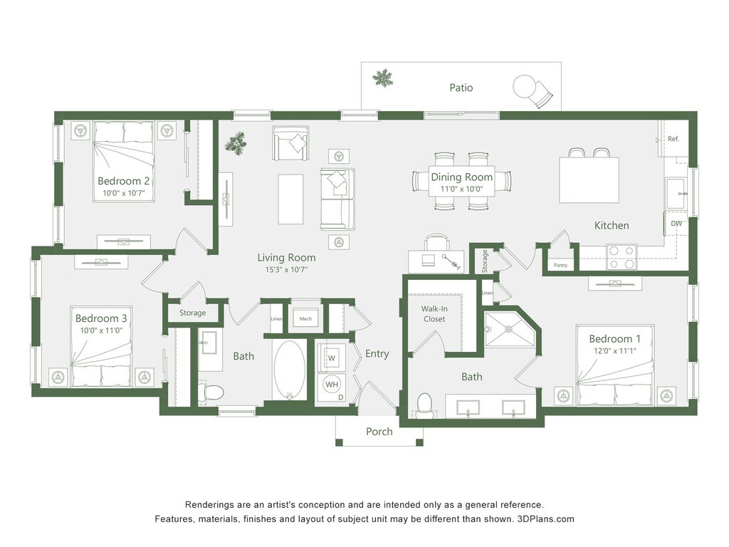 3 Beds, 2 Baths, 1245 sq ftModel Gallery