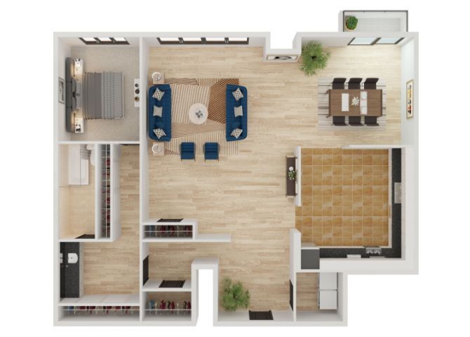1 Bed, 1 Bath, 829 sq ftModel Gallery