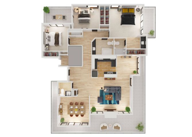 3 Bed 2 Bath - Floorplan 1 Penthouse A