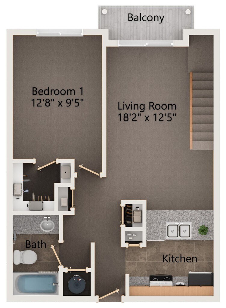 Studio, 1 Bath, 496 sq ftModel Gallery
