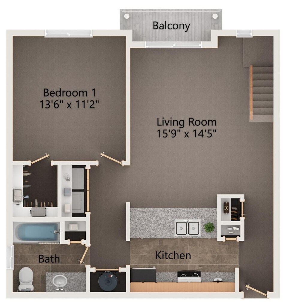 1 Bed, 1 Bath, 653 sq ftAvailable NowModel Gallery