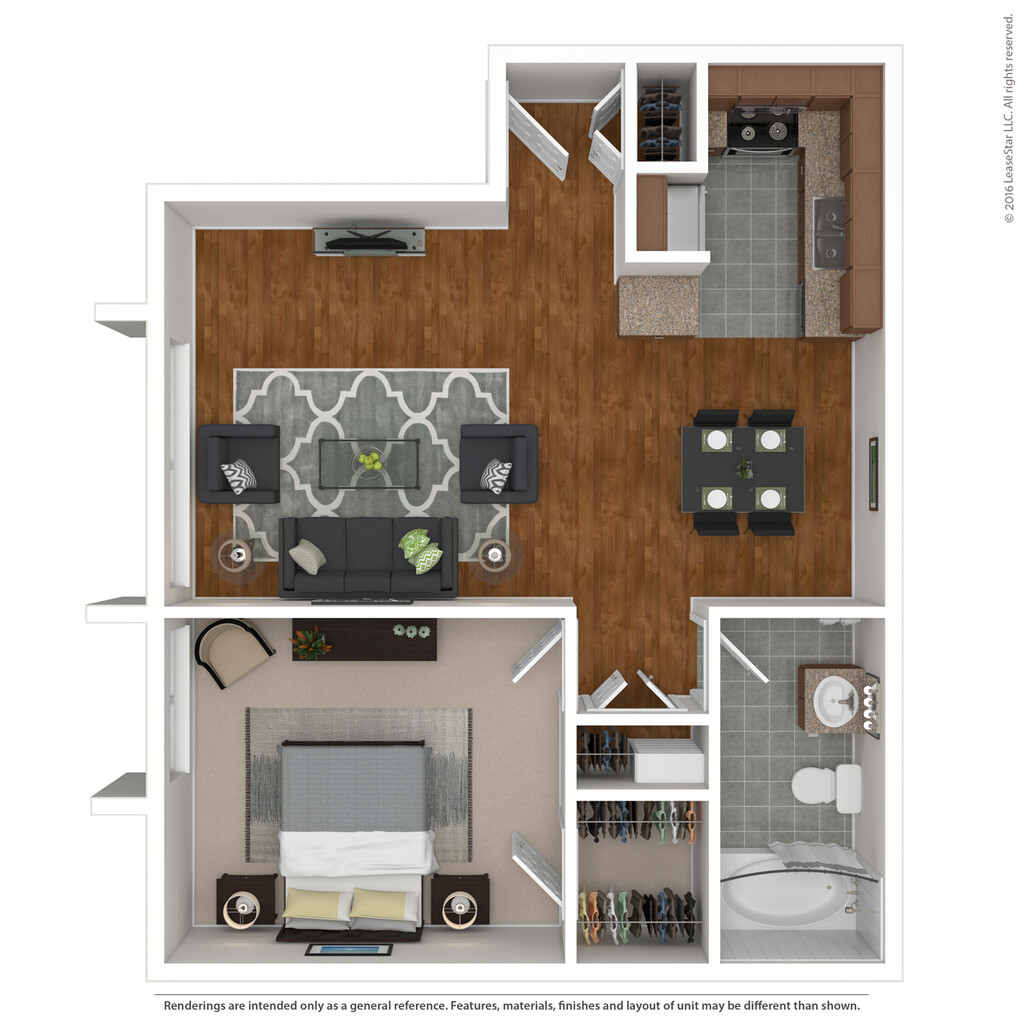 Apartment Model: Large 1 Bed 1 BathCall For Rates1 Bedroom, 1 Bath, 712 sq ftUnavailableFloor plans are artist's rendering. All dimensions are approximate. Actual product and specifications may vary in dimension or detail. Not all features are available in every rental home. Prices and availability are subject to change. Base rent is based on monthly frequency. Additional fees may apply, such as but not limited to package delivery, trash, water, amenities, etc. Deposits vary. Please see a representative for details.