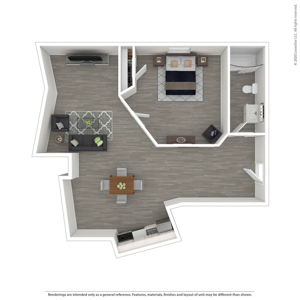 Apartment Model: 1x1HFrom $2,0021 Bedroom, 1 Bath, 745 sq ftAvailable NowFloor plans are artist's rendering. All dimensions are approximate. Actual product and specifications may vary in dimension or detail. Not all features are available in every rental home. Please see a representative for details.