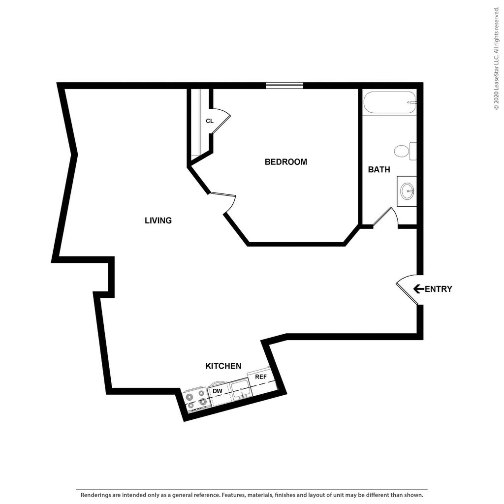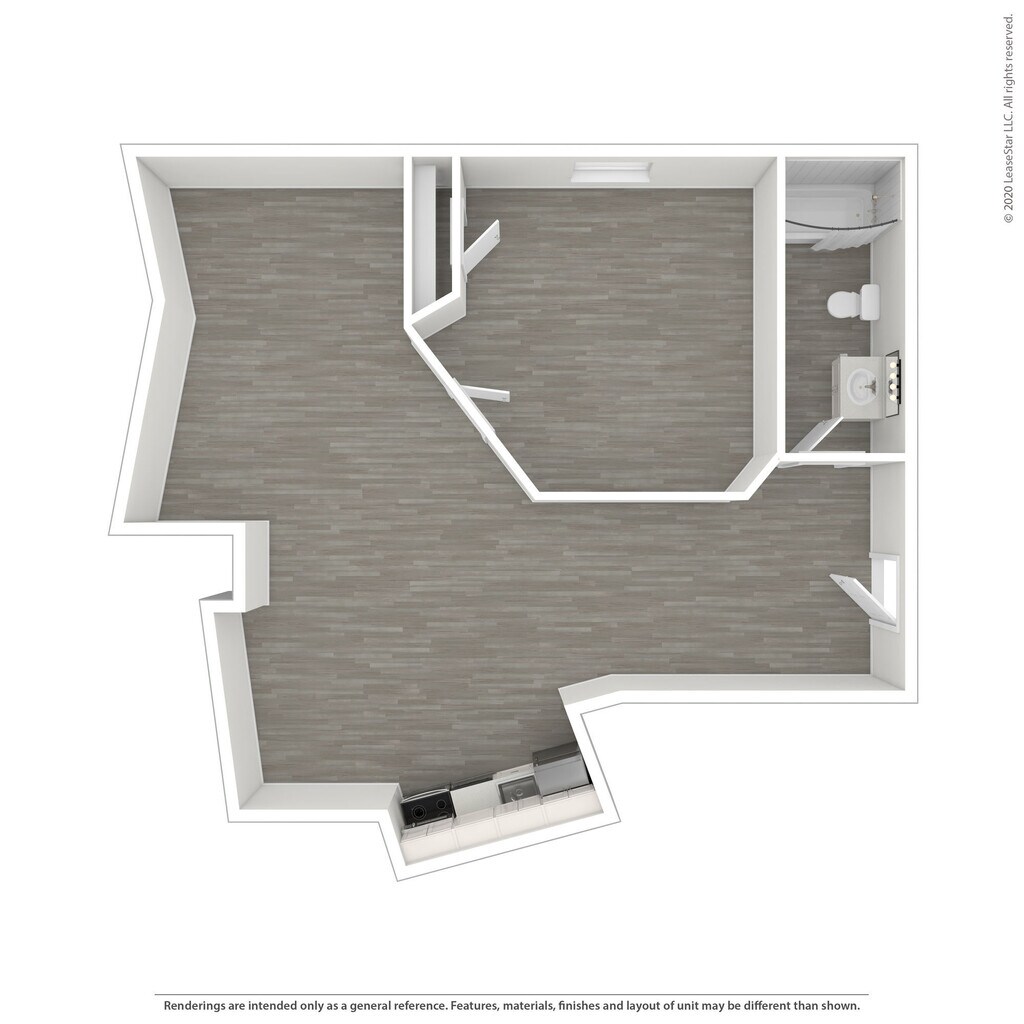 1x1H - Floorplan 1 Floor plans are artist's rendering. All dimensions are approximate. Actual product and specifications may vary in dimension or detail. Not all features are available in every rental home. Please see a representative for details.