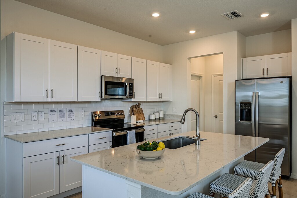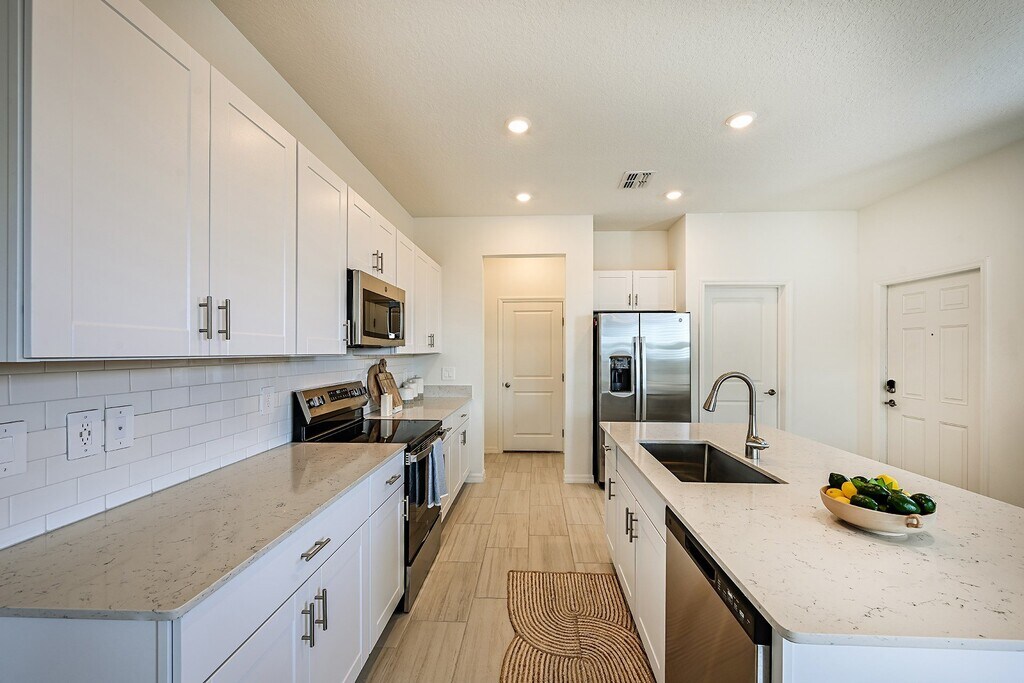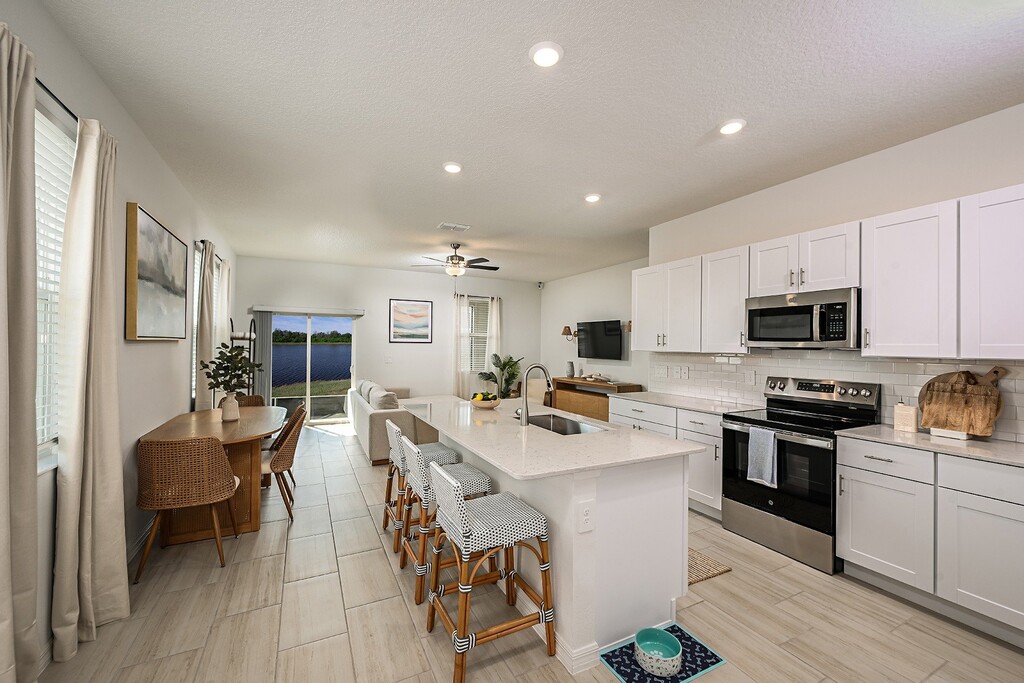 Homes at SkyMor Southshore Bay are two, three, and four-bedroom modern townhomes with the most desired amenities in the market. Outside, we deliver the private SkyMor Lodge, with a resort-inspired pool, gym, and large gathering spaces. At our homes, we deliver fenced, private backyards and screened-in lanais. Inside, we offer ceiling fans, tile and luxury vinyl plank floors, and chef-driven kitchens, as well as spacious modern baths. And maybe best of all, we do all the work maintenance, the lawn, and repairs. Come and Play Today.