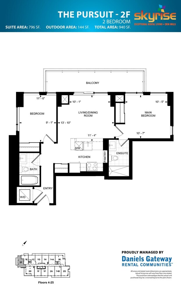 Studio to 2-Bedroom Suites Available For Rent in Erin Mills, Mississauga Welcome to Skyrise Rentals: Modern Living with the Security of Rent Control. Located within the Daniels Erin Mills master-planned community in Mississauga, Skyrise offers an unparalleled rental experience. As a rent controlled building, it ensures stability alongside its prime location, remarkable suite features, modern finishes and building amenities, creating an extraordinary lifestyle opportunity.