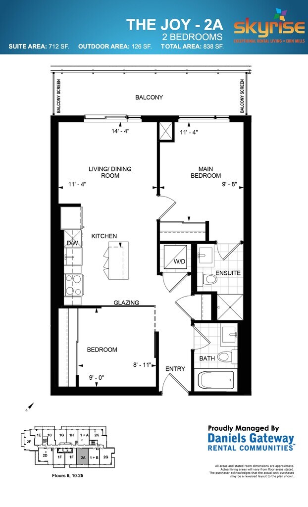 The Joy - Floorplan 1 Apartment Unit: 612Apartment Model: The Joy$2,7002 Bedroom, 2 Bath, 712 sq ftAvailable Now![]()