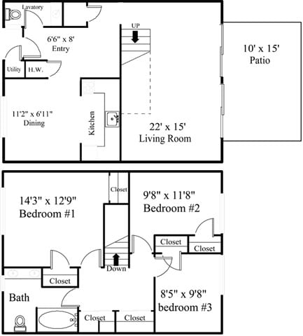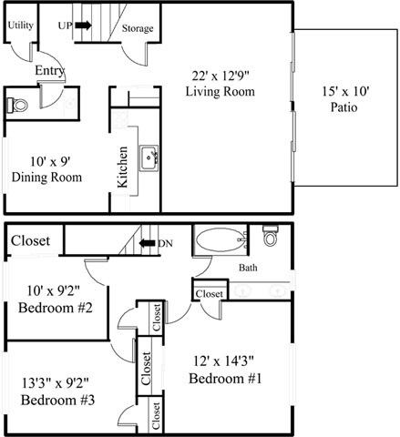 Two Bedroom Townhouse Skytop II - Floorplan 1 3 Bedrooms
