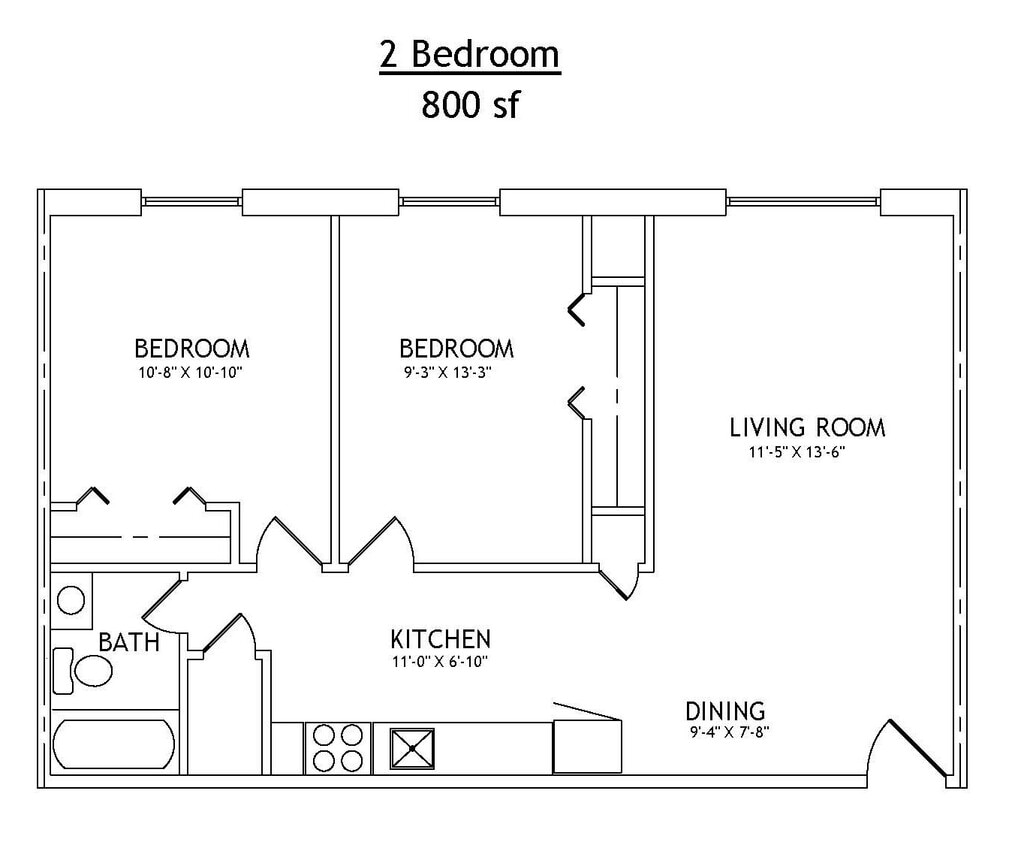 Apartment Model: 2 BedroomFrom $9252 Bedroom, 1 Bath, 750 sq ftAvailable Now![]()