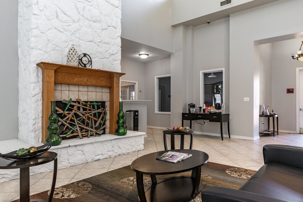 Welcome Home to Skyway Villas Apartments in McKinney, TX! Skyway Villas is situated in the heart of McKinney, offering two and three-bedroom homes with window coverings, a refrigerator, a microwave, a gas range, a washer and dryer hookup, and just minutes from shopping, dining, and entertainment. Enjoy our exclusive amenity package, including a swimming pool, fitness center, playground, and covered parking. Contact us today to schedule a private tour of our affordable apartments in McKinney, TX. A residential apartment complex featuring red brick buildings and green landscaping, with parked cars near the entrance. Exterior view of Skyway Villas Apartment Homes with a sign and surrounding greenery A stone sign for Skyway Villas Apartment Homes located at 2000 Skyline Drive, surrounded by colorful flowers and greenery. A clear swimming pool with a water fountain in the center, surrounded by a fenced area and greenery. In the background, there are apartment buildings and a children's play area with slides and swings. A playground area featuring picnic tables, colorful play equipment, and a pool in the background, set against apartment buildings under a clear sky. A small home gym featuring an elliptical machine, a treadmill, and a weight machine against a beige wall with a window letting in natural light.
