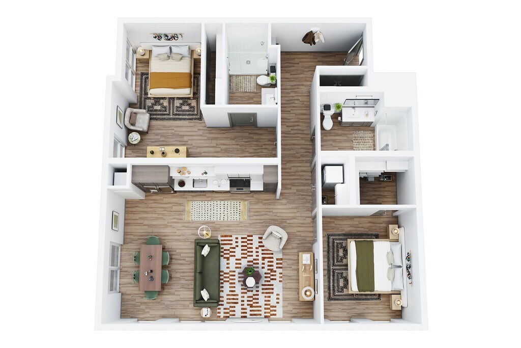 1 Bed, 1.5 Baths, 916-1063 sq ftAvailable NowLargest 1 BedroomThis is the largest 1 Bedroom at this PropertyModel Gallery