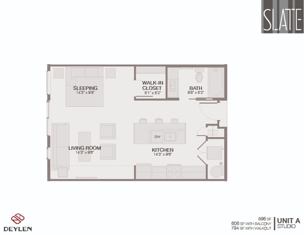 Slate Apartments offers Studio to 2 Bedroom apartments starting from $1,430 and having 596–1,190 sq ft. Here is the current pricing and availability: