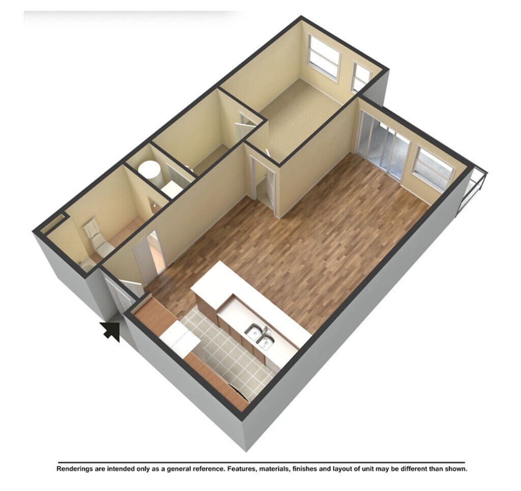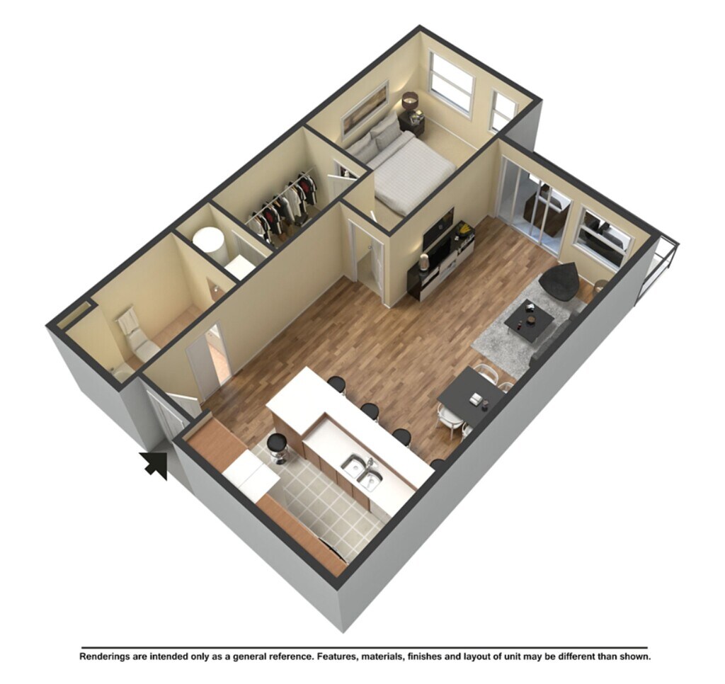 Studio, 1 Bath, 596 sq ftAvailable NowModel Gallery