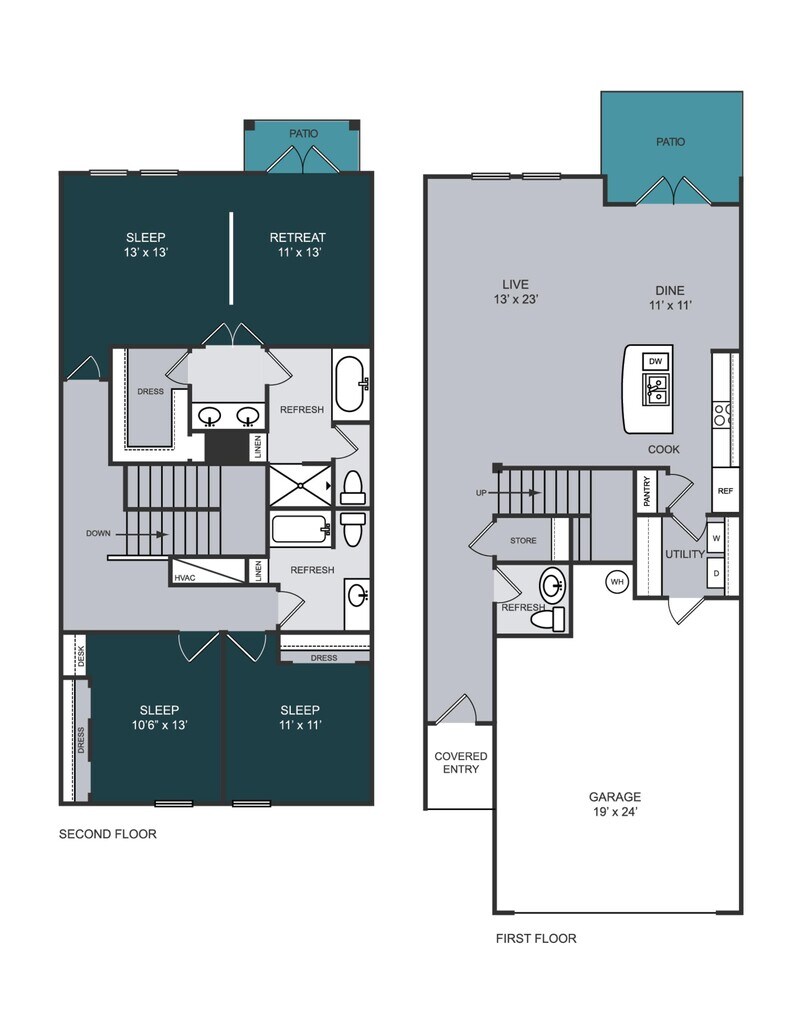The Llano - Floorplan 1 Apartment Unit: 0201Apartment Model: The Llano3 Bedroom, 2.5 Bath, 2157 sq ftAvailable NowApartment Unit: 0101Apartment Model: The Llano3 Bedroom, 2.5 Bath, 2157 sq ftAvailable November 21, 2025The Mesquite