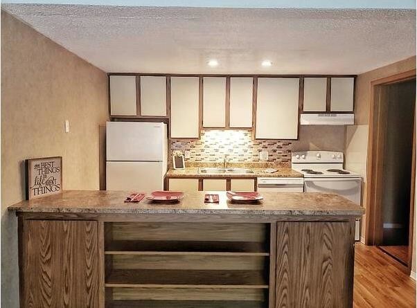 Pricing includes; water, sewer, trash, and general pest preventative. This unit has a breakfast bar.