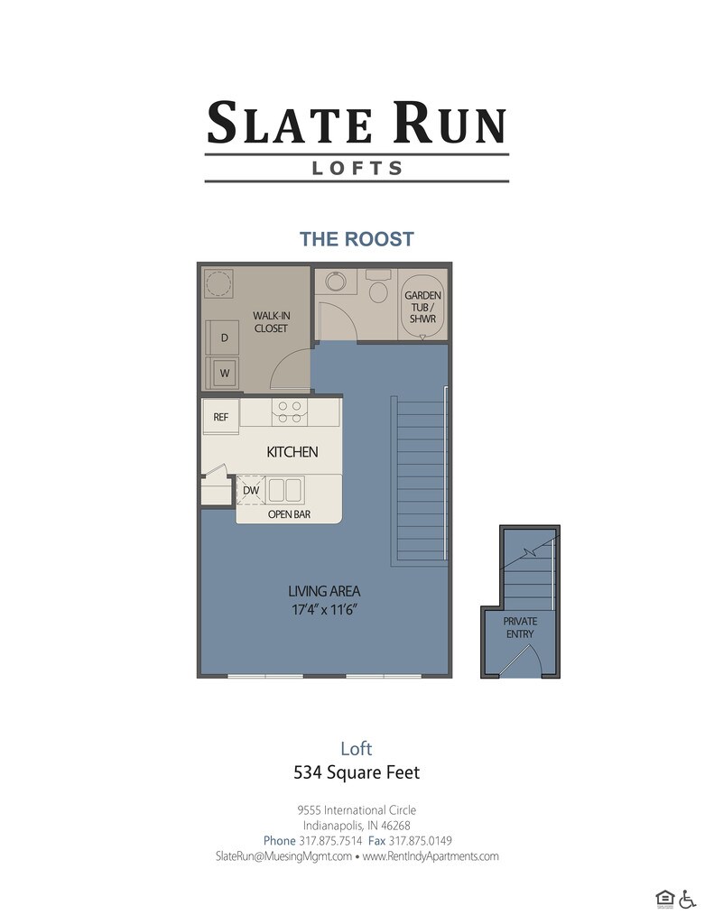 Slate Run Lofts studio, loft, one and two-bedroom apartment homes, and desirable north side location, combine modern style and convenience for our residents. This quaint community is situated in an excellent, suburban location, immediately adjacent to Carmel on 96th Street between Michigan Road and Township Line Road. Accessibility to I-465, I-65, U.S. 31 or downtown is easy. Our charming studio, loft, one and two-bedroom apartment homes include an array of stylish décor elements such as contemporary kitchens with sophisticated shaker cabinets and granite countertops, plank flooring, garden soaking tub, USB charging outlets, generous walk-in-closets and full -size washer/dryer included. Residents will enjoy working out in the state-of-the-art fitness center. The community is one of a few to offer Electric Vehicle charging stations on site to our residents. Slate Run Lofts is a smoke-free community and small pets are welcome. Come reside with us! Our professional, onsite staff is available to assist you with additional information to help you select your new home at Slate Run Lofts.
