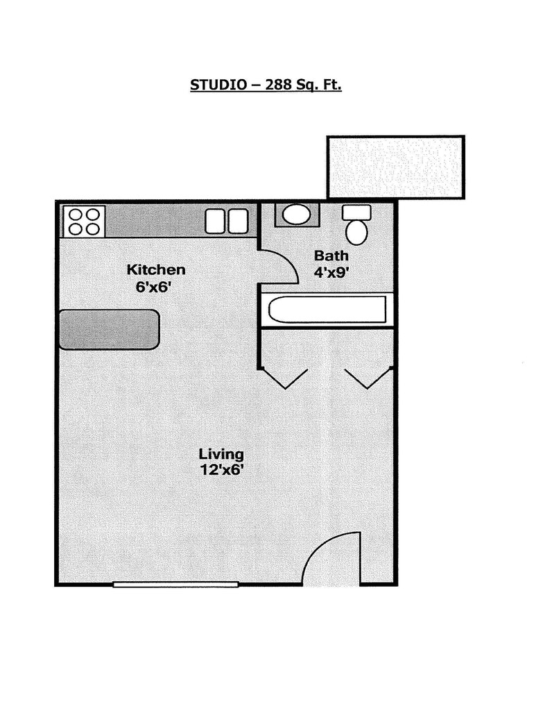 Studio, 1 Bath, 288 sq ftAvailable NowCheapest StudioThis is the cheapest Studio at this PropertyModel Gallery