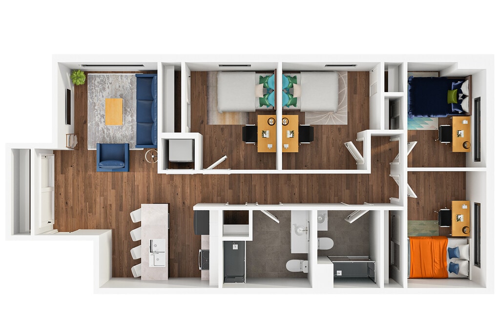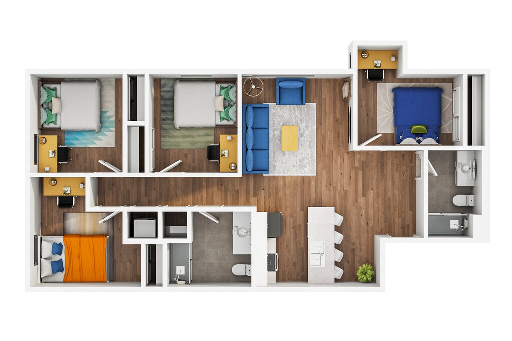Apartment Model: 4x3From $1,2804 Bedroom, 3 Bath, 1300 sq ftAvailable Now![]()