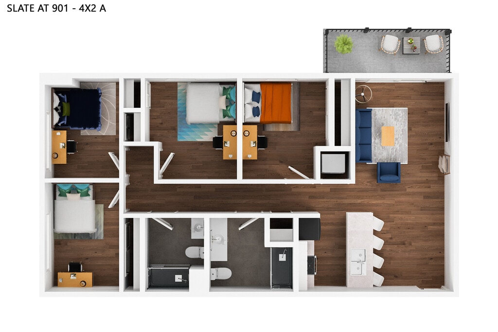 2 Bedroom to 4 Bedroom Apartments at Slate at 901 currently range from $820 to $1,655