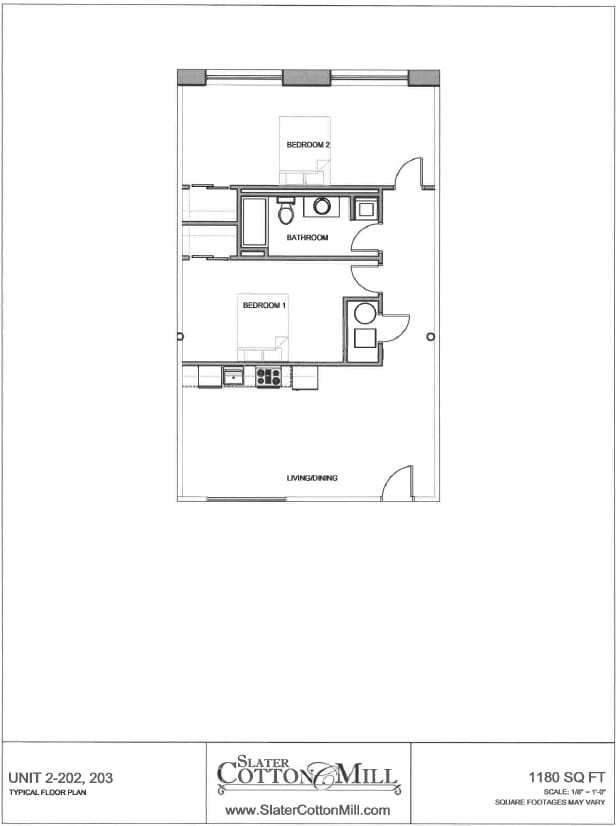 Slater Cotton Mill offers 1 to 2 Bedroom apartments starting from $1,800 and having 816–2,140 sq ft. Here is the current pricing and availability: