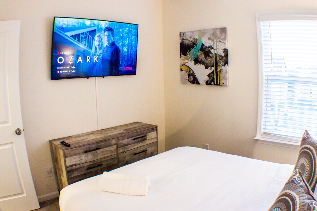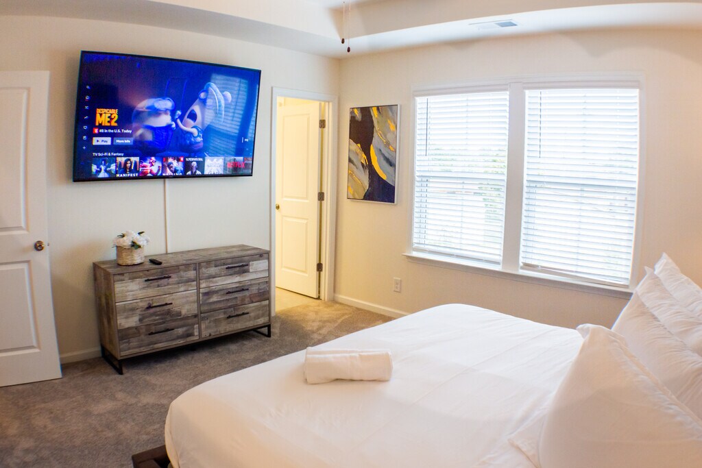 This is your perfect home away from home. Modern fully furnished luxurious Home Common Spaces: Fully equipped kitchen, dining room, and living room with 70" Smart TV with Netflix subscription Room 1: King Bed with master bathroom attached, walk-in closet, and 65" Smart TV with Netflix subscription Room 2: Queen Bed with shared bathroom, and 55" Smart TV with Netflix subscription Room 3: Full over full bunk beds with twin trundle, and 55" Smart TV with Netflix subscription Family Room: Cozy living room space with a working station and 1 Queen Air Bed Garage: Two car garage and 8 guest parking spaces Balcony: Enjoy a relaxed seating area Upscale Decorations. Deck, beautiful Bathrooms. 3 Perfect Size Bedrooms. 5 Furnished Beds. Fully Equipped Kitchen, Bathrooms, and Rooms. Stainless steel appliances. Wifi and Netflix! Situated in the heart of Ballantyne, Only a 4min drive to Blakeney and Stonecrest Shopping Centers, where you will find a variety of restaurants, movie theater, grocery stores, and 4min drive to Big Rock Nature Preserve.