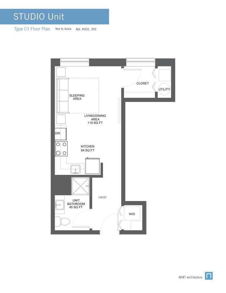 C1 Studio - Image 6 Apartment Unit: #302Apartment Model: C1 Studio$1,300Studio, 1 Bath, 380 sq ftAvailable June 10, 20261 Bedroom