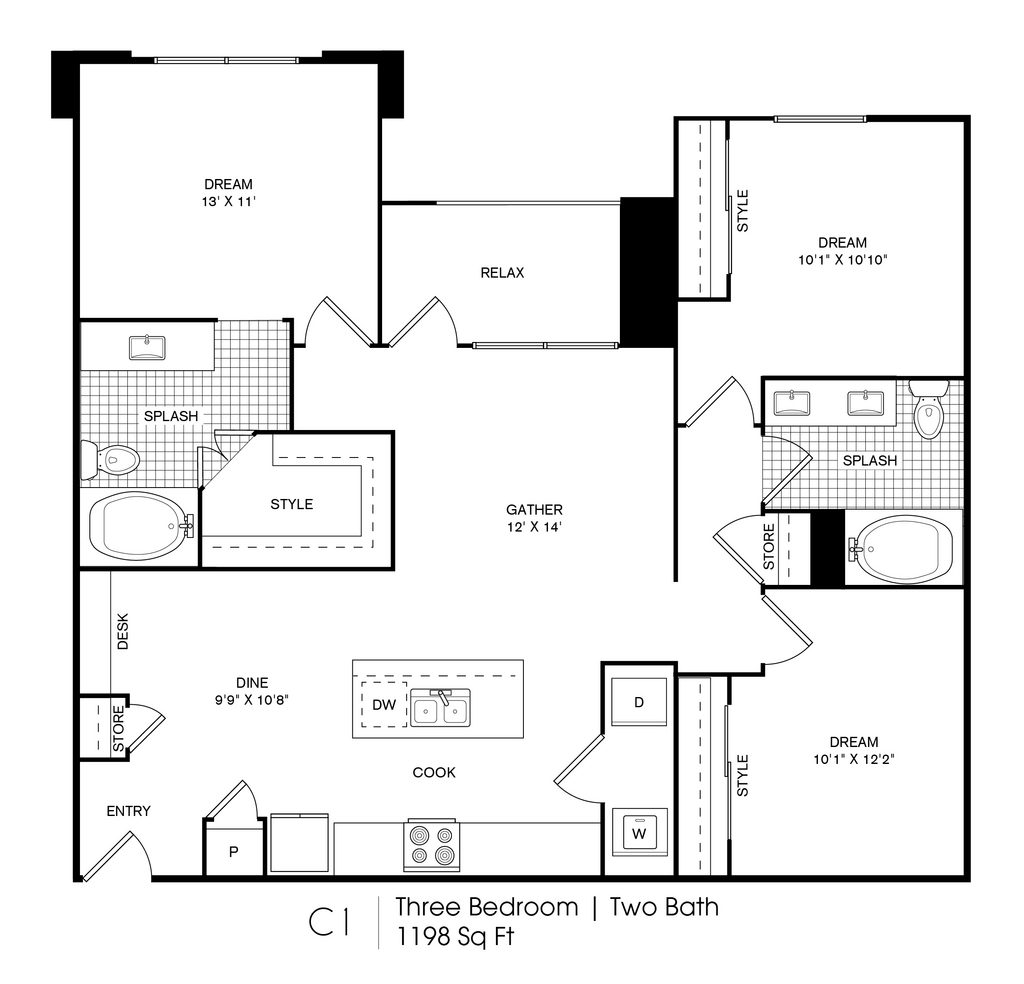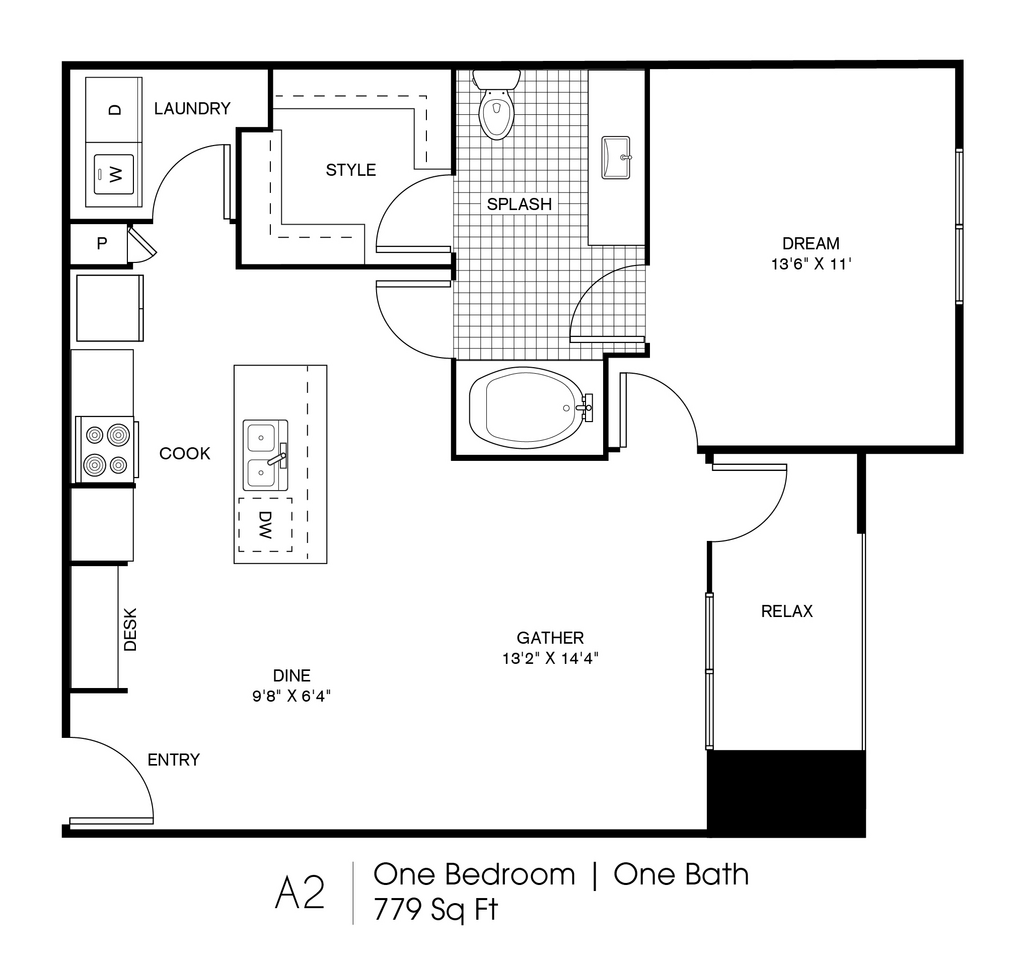1 Bed, 1 Bath, 779 sq ftAvailable NowModel Gallery