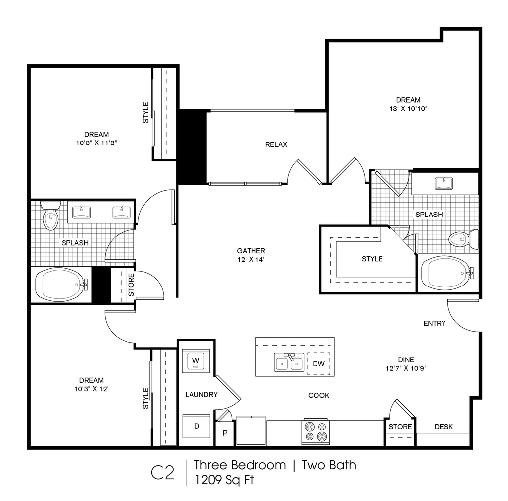 2 Beds, 2 Baths, 1067 sq ftAvailable NowModel Gallery