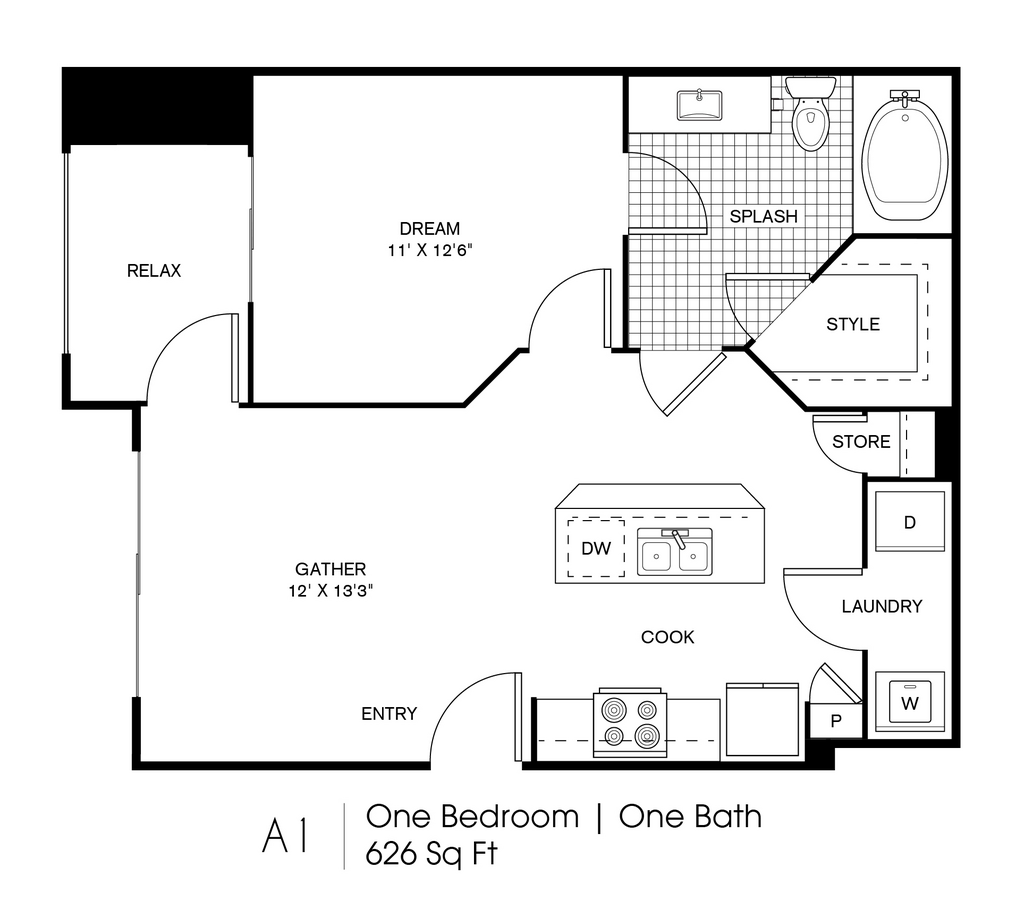 1 Bed, 1 Bath, 625 sq ftModel Gallery