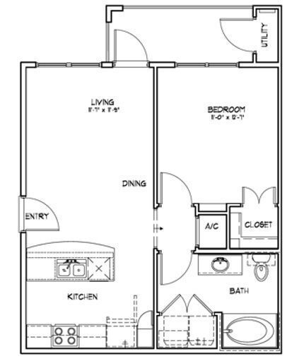 1 Bed, 1 Bath, 631 sq ftModel Gallery