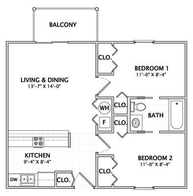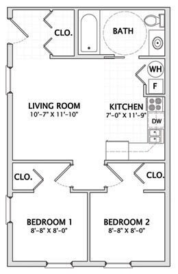 Apartment Model: 2 Bed 1 Bath 560 sqft2 Bedroom, 1 Bath, 560 sq ftUnavailable![]()