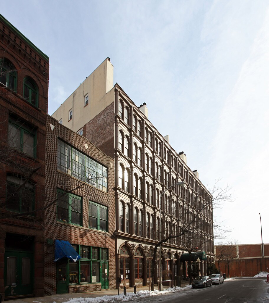 The façade of this building is one of the finest examples of 19th Century cast-iron architecture in the nation. These apartments boast high ceilings, central air, fireplaces, and oversized windows. Some apartments have balconies with views of the Ben Franklin Bridge. This building, as well as Smythe’s Corner, is named for Samuel Smythe, a renowned department store proprietor who made Old City his home.
