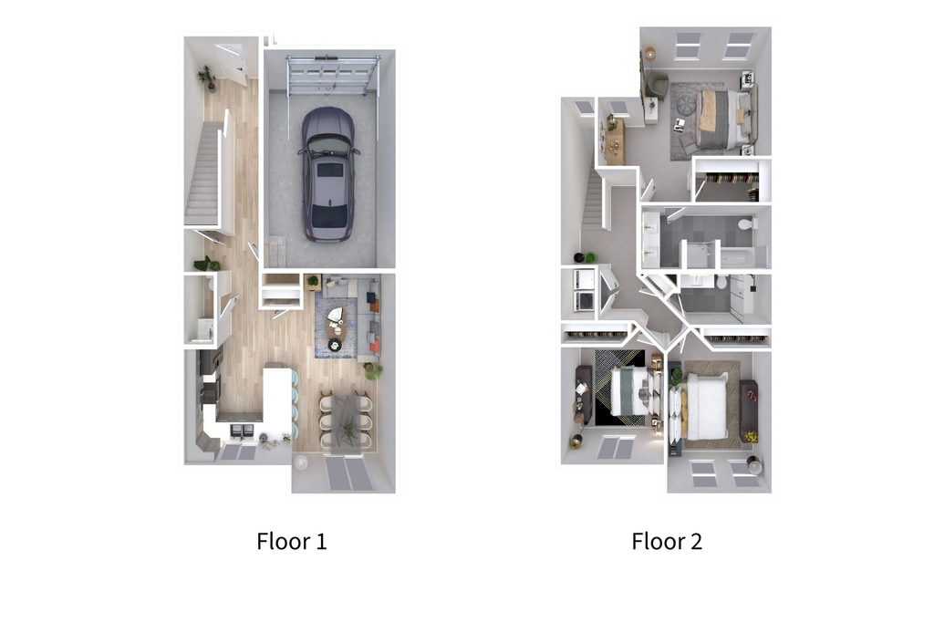 2 Beds, 2.5 Baths, 1264 sq ftAvailable NowModel Gallery