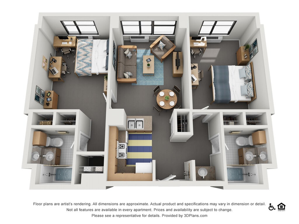 2 Beds, 2 Baths, 1008 sq ftAvailable NowModel Gallery