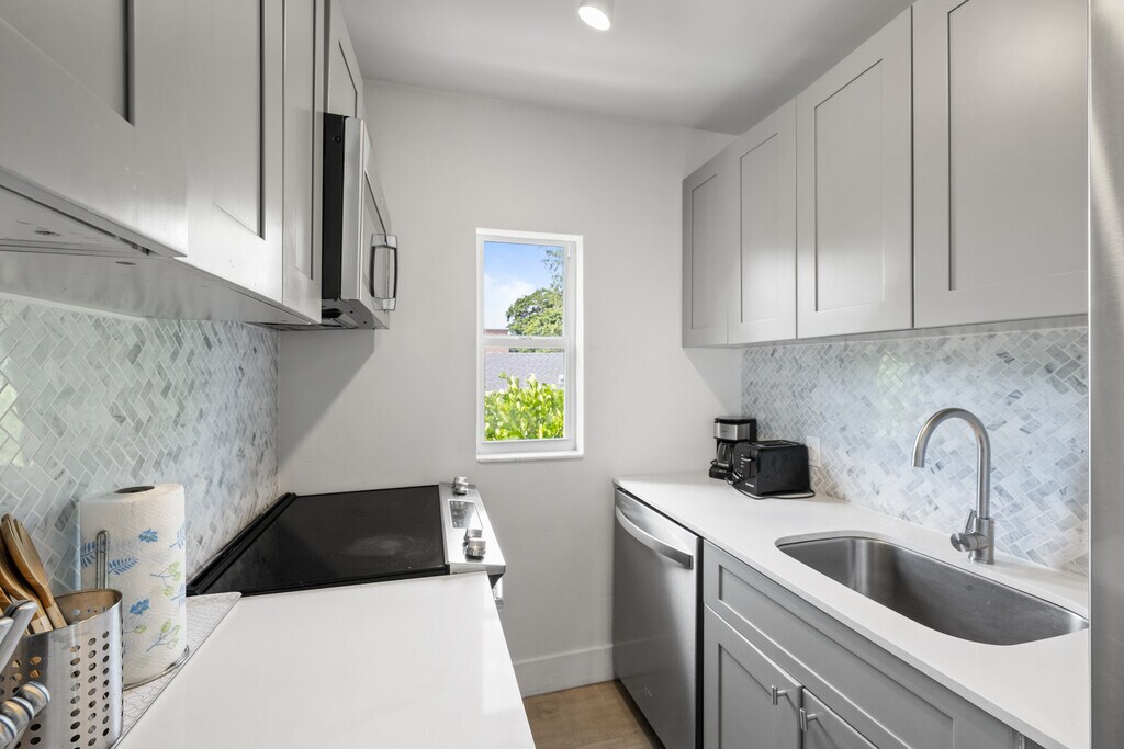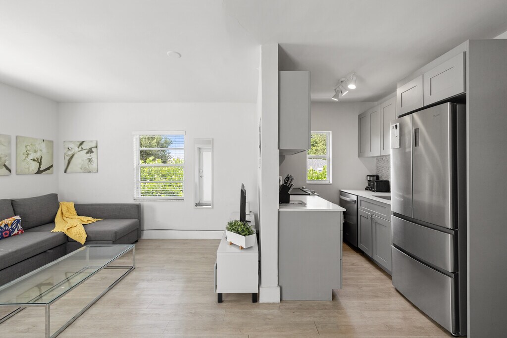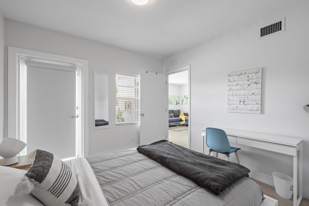 Brand new & freshly designed 1 and 2 Bedrooms for rent, fully furnished/decorated with style, and includes Professional Internet Broadband by ATT. Each apartment has been designed to maximize space and light. Amenities: ROKU Smart TV in all units, 2 washers/dryers on site, on-demand home maintenance service, free assigned parking, on site 24/7 video surveillance, on site bicycle rack, lovely backyard set up with outdoor lounge chairs, Camping-style communal table, and surrounded by clusia trees. Happy Building is located walking distance from the University of Miami, Uhealth Medical Center, Larkin Community Hospital South Miami and Sunset Mall. Our community of tenants is very nice and eclectic from Doctorate Medical students and Visiting professors to Entrepreneurs! Check out our Insta HappylivinMiami to see some of our tenants testimonials! Enjoy Happy Livin' property management services, and have a hassle-free stay! We welcome international students with no credit history. We speak English, French, Spanish. PS: If you are not able to see the units in person, we can sent you 360 videos/photos, or set up a Facetime
