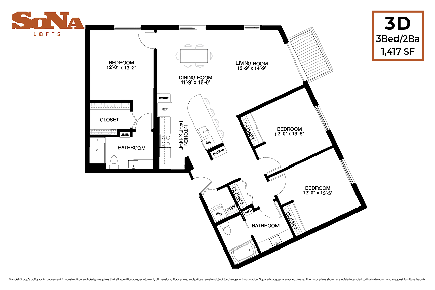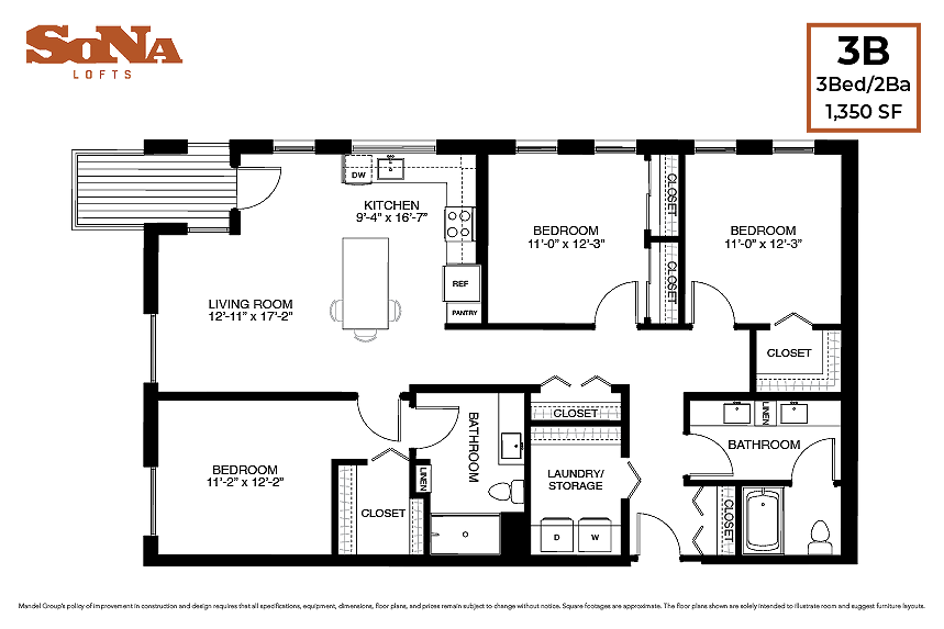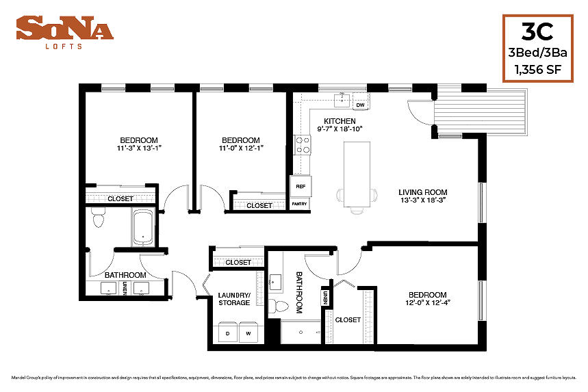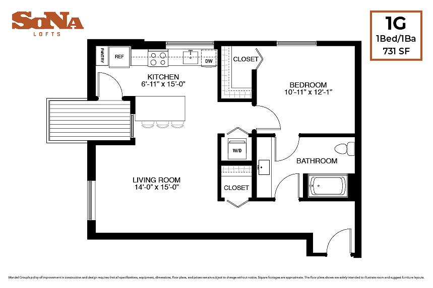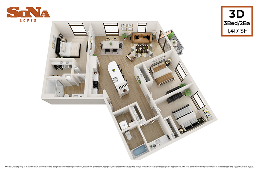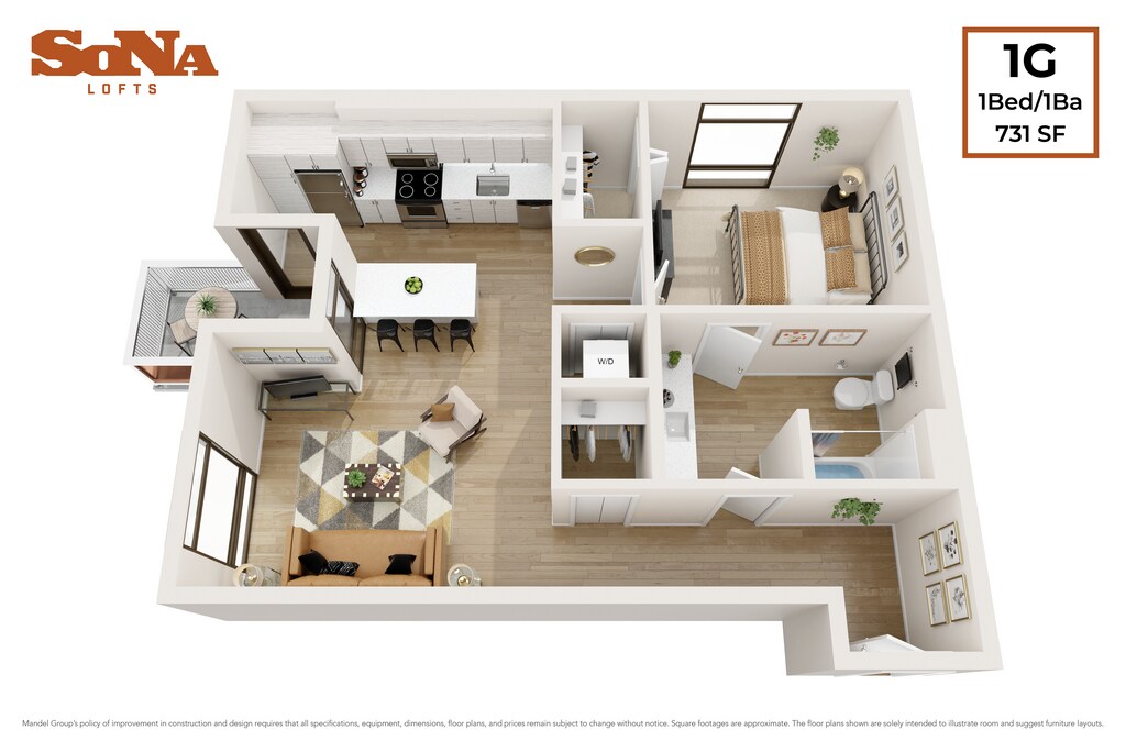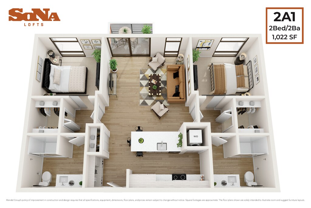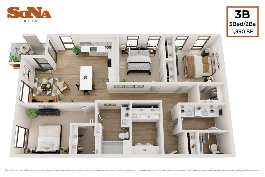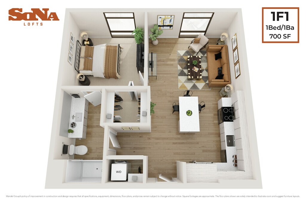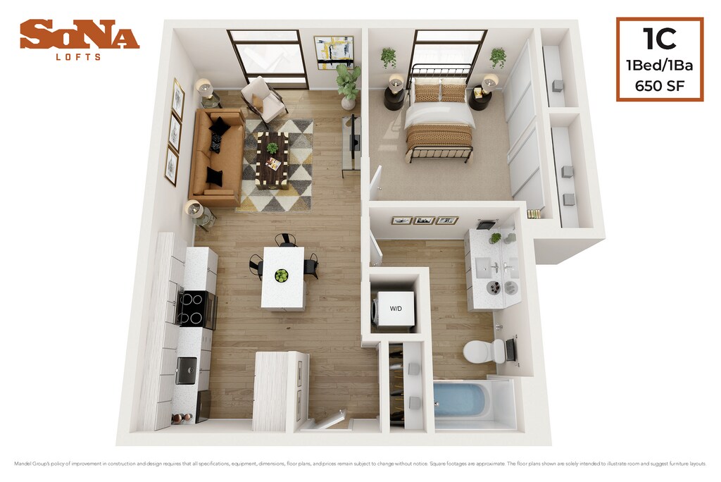 SoNa Lofts offers Studio to 3 Bedroom apartments starting from $1,503 and having 425–1,417 sq ft. Here is the current pricing and availability: