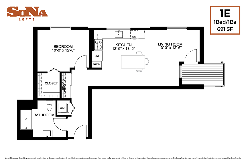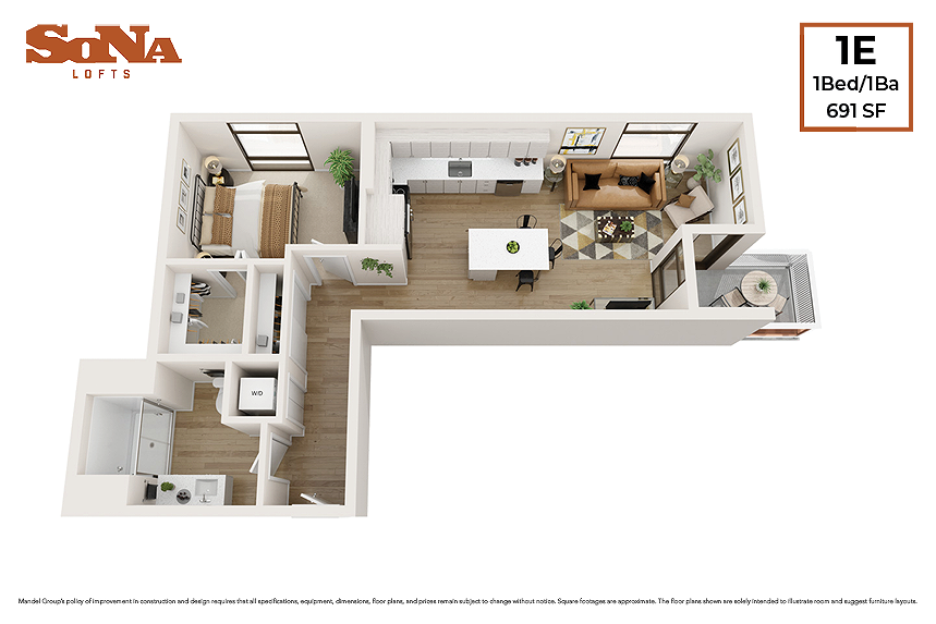 1E - Floorplan 2 Apartment Unit: 01-302Apartment Model: 1EFrom $1,6101 Bedroom, 1 Bath, 691 sq ftAvailable November 14, 2025Floorplan 1B