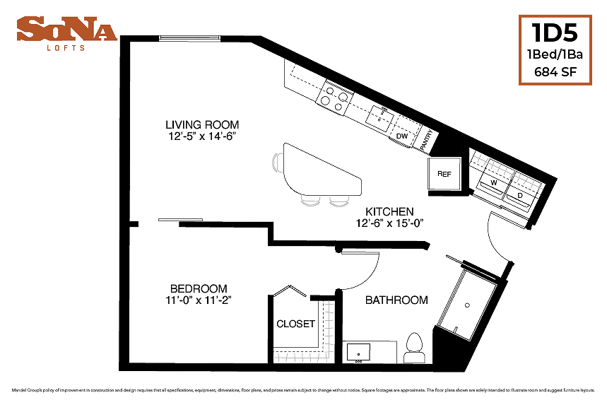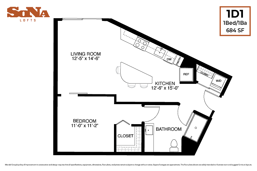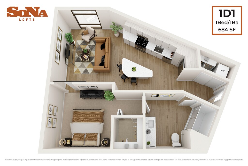 1 Bed, 1 Bath, 684 sq ftModel Gallery